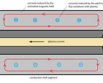 Utilizing alternating current for enhanced stability in toroidal reactors. This current will create an alternating poloidal magnetic field around plasma column. This alternating poloidal magnetic field together with a specially designed conductive shell will completely change the plasma behaviour and improve stability.
